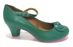 This vintage inspired Cristofoli Shoe is both timeless and elegant. This beautiful shoe is in a lovely green leather, with contrast piping in rose gold, sweet flower detail with rose gold embroidered edging and adjustable ankle strap. It’s a fun twist to the classic pump.