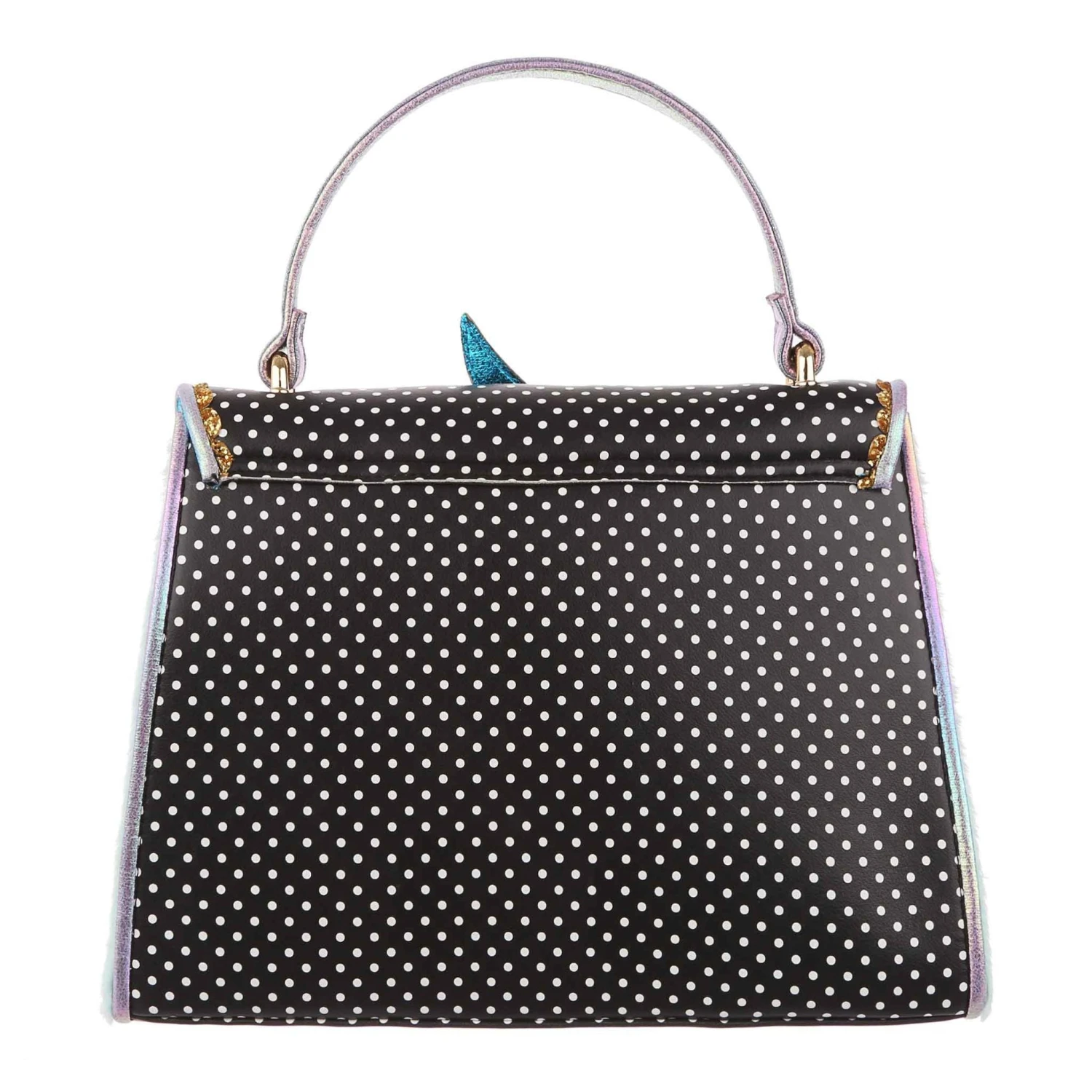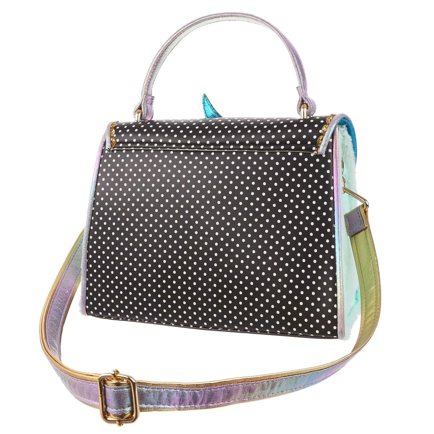 Feel all the love with this stunning handbag! The adorable bunny couple Bugs and Lola adorn this perfect polka dot vintage style handbag, dotted with fabulous pastel hearts. Complete with a dainty handle on the top of the bag and an optional over-the-shoulder strap so you can wear it however you want! The interior is fully lined and complete with extra pockets for all your goodies and trinkets! Perfect to pair with a matching pair of our Looney Tunes shoes or to wear alone – this bag is sure to be a staple in your wardrobe!