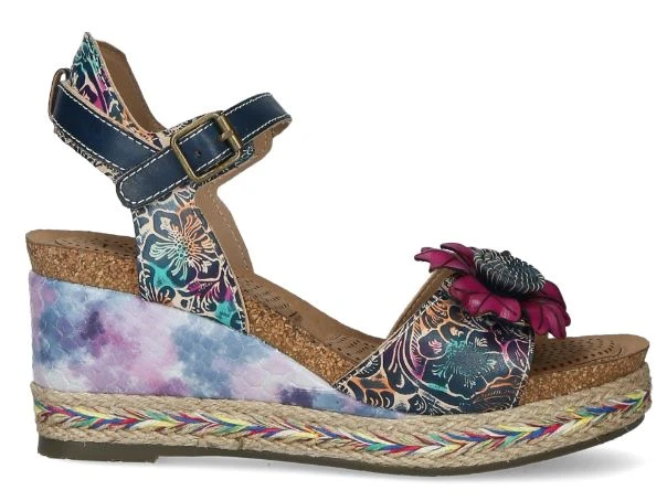 Beautiful Wedges by Laura Vita France, perfect for the warmer weather. These great wedges are as practical as they are gorgeous, with their adjustable ankle strap and adjustable placement over the top of the foot to fit any width. They are adorned with a super sweet flower that adds a fun little twist!