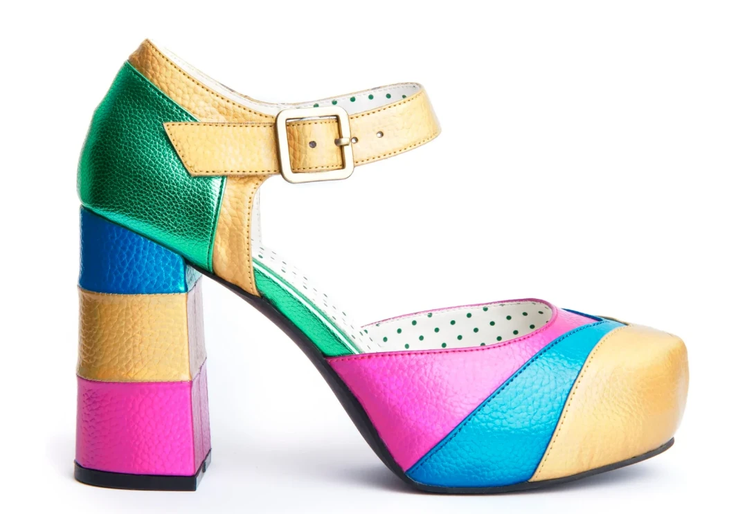 Chloe is a new style with multiple colors and a holographic shine. This 70’s inspired platform is sure to turn heads!