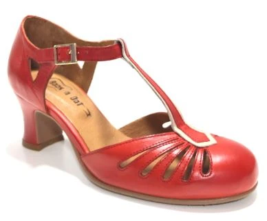 These Beautiful vintage inspired mid heels are in the softest leather that is just heaven on your feet! This pair is in a vibrant red leather with a soft pink piping.